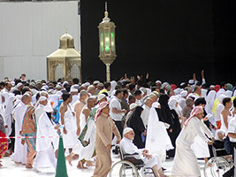 10: This pilgrim has an orange beard. I noticed a number of men & some women with orange hair/beards. I'm advised it means; i) He/she has been on haj before; ii) it is a custom in some areas of Pakistan; iii) our Guide Abdullah said 'Muslims are only allowed to use Henna if they wish to thicken their hair' - I'll run with that. Of course I could have just asked the pilgrim. -enlarge