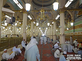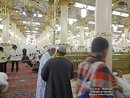 We visit Al-Masjid al-Nabawī, Mosque of the Prophet. Duncan is taken by our guide Abdullah, to see Muhammad's Tomb. Women are not allowed to view it. The Prophet Muhammad died around noon on Monday June 8, in the year 632, in Madinah. He fell ill 10 days earlier and most likely died of bacterial meningitis, a disease that was known throughout the Middle East since the start of recorded history. He was 63 years old.