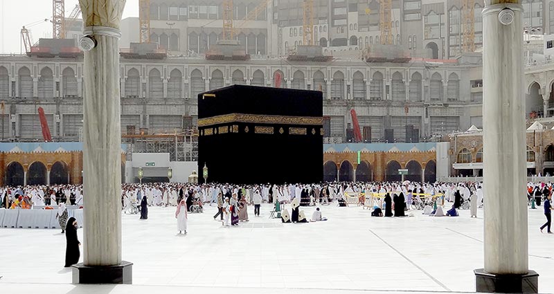 One of the Five Pillars of Islam requires every Muslim to perform the Haj pilgrimage at least once in his or her lifetime if able to do so. Multiple parts of the Haj require pilgrims to walk seven times around the Ka' ba in a counter-clockwise direction (as viewed from above). This circumnavigation, the Tawaf, is also performed by pilgrims during the Umrah (lesser pilgrimage). However, the most dramatic times are during the Haj, when about 2 million pilgrims gather to circle the building on the same day.